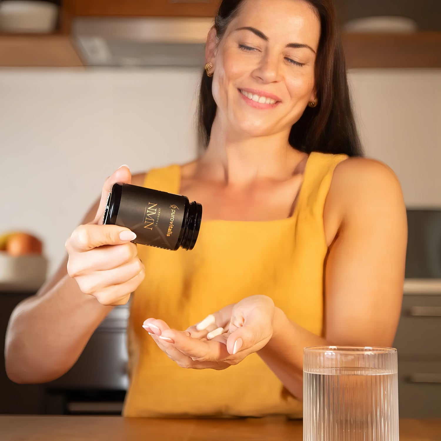 Our NMN, exclusively from Lithuania, stands as the sole European contender, boasting an impressive 99+% purity. Complemented by our premium Swiss liposomes and crafted in the Netherlands, we’re more than just supplements; we’re a commitment to unparalleled quality. We won’t promise you’ll leap buildings, but with our dedication, you’ll surely feel on top of the world. Age? Do it with style and vigor!